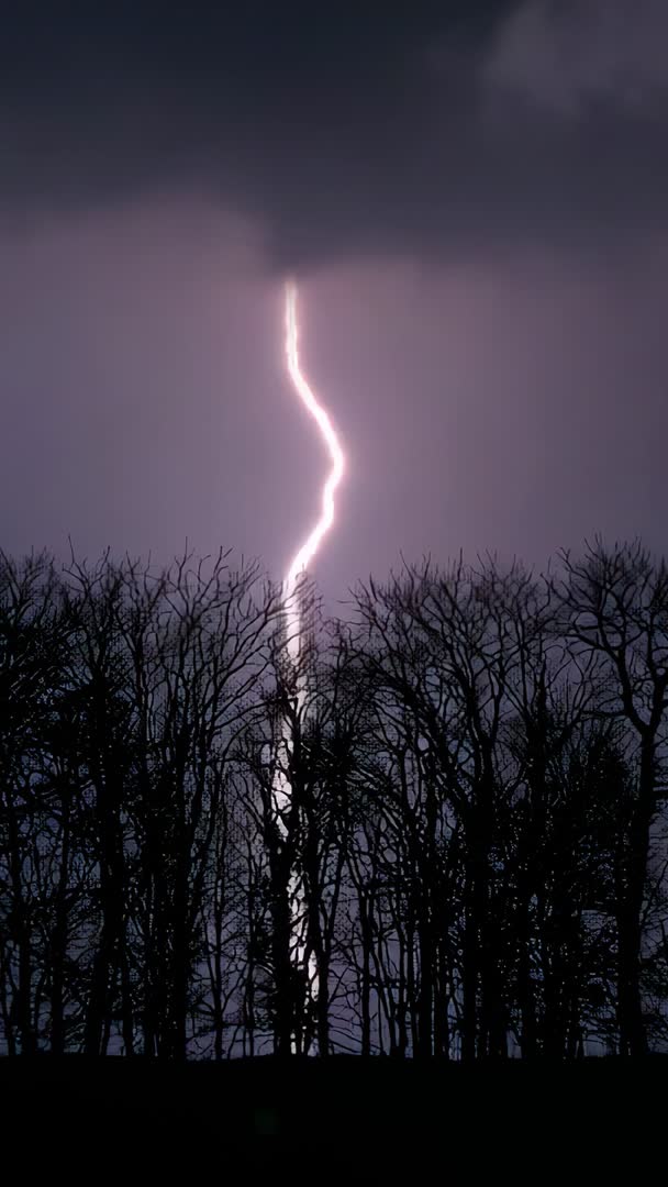 - Lightning Bolt Striking Bare Trees at Forest Edge During Night Storm Vertical Video