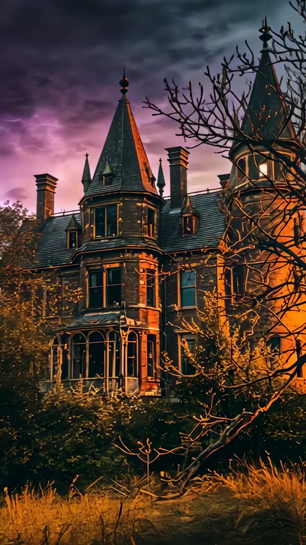 - Lightning Striking Victorian Mansion During Stormy Twilight | Vertical Video Gothic Turret