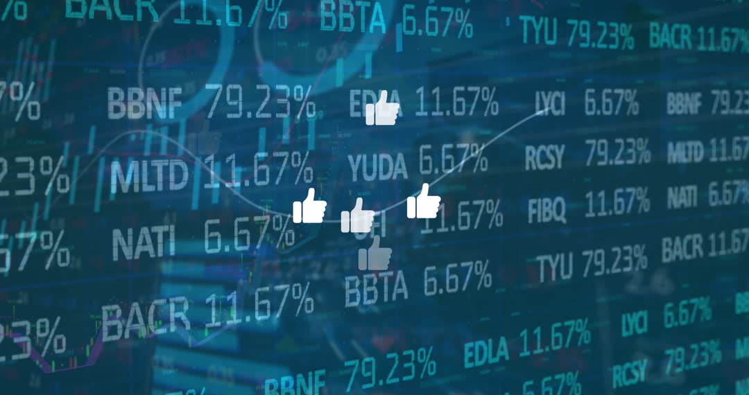 This video features a blend of like icons overlaid on animated stock market trends and figures. Ideal for illustrating concepts related to cryptocurrency and stock trading, social media influence on markets, and innovative digital marketing strategies. Useful for publications focusing on the intersection of technology and finance as well as advertising content for financial technology (fintech) services.
