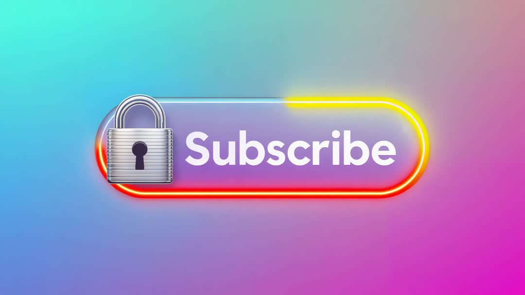 - Locked Subscribe Button Motion Graphic with Neon Glow and Padlock for Secure Signups