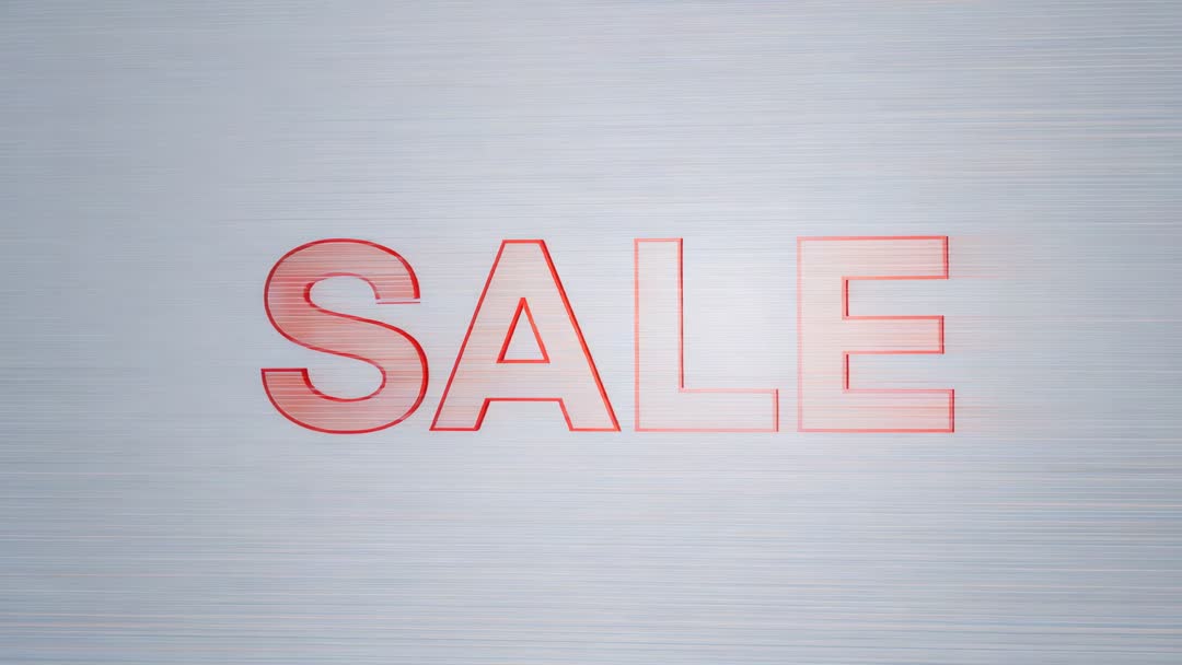 AI Generated Image. Looping 5-second clip showing bold red SALE outline pulsing into ghost glitch across brushed metal surface. Scanline overlay adding retro electronic texture and subtle motion noise. Typography staying centered and dominant for instant readability. Graphic working well for social media ads, website hero headers, email banners, in-store digital signage, and TV spot openers. Designers using clip to announce flash deals, holiday promotions, clearance events, and Black Friday campaigns. Editors layering logo, price badge, or animated countdown on lower third for clear call to action. Color palette matching red brand accents for urgent promotional messaging. File delivering high contrast for mobile thumbs and full-screen playback while enabling seamless loop for continuous display.