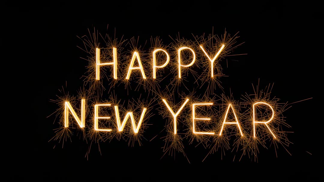 - Looping Gold Sparkler Text HAPPY NEW YEAR Sending Sparks and Trails on Black Backdrop
