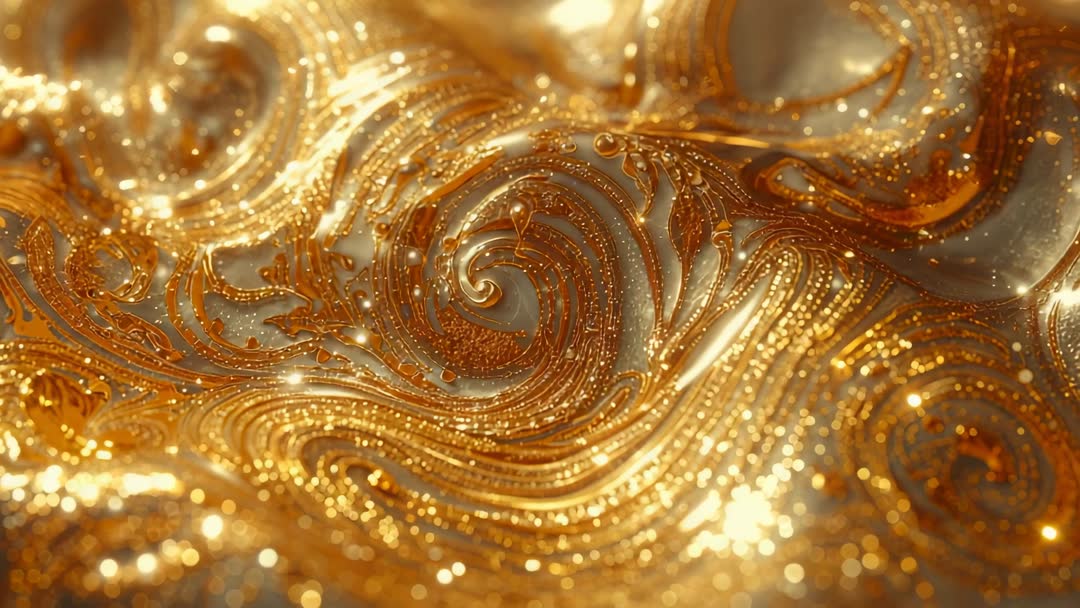 - Looping Golden Fluid Dynamics with Shimmering Metallic Effect