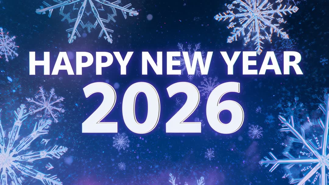 - Looping Happy New Year 2026 Animation Pulsing Typography with Falling Snow and Snowflakes