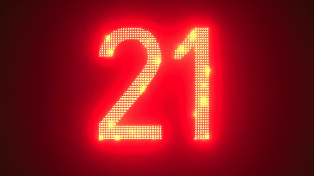- Looping LED Countdown Display Showing 21 with Pulsing Red Glow and Sparkling Pixels