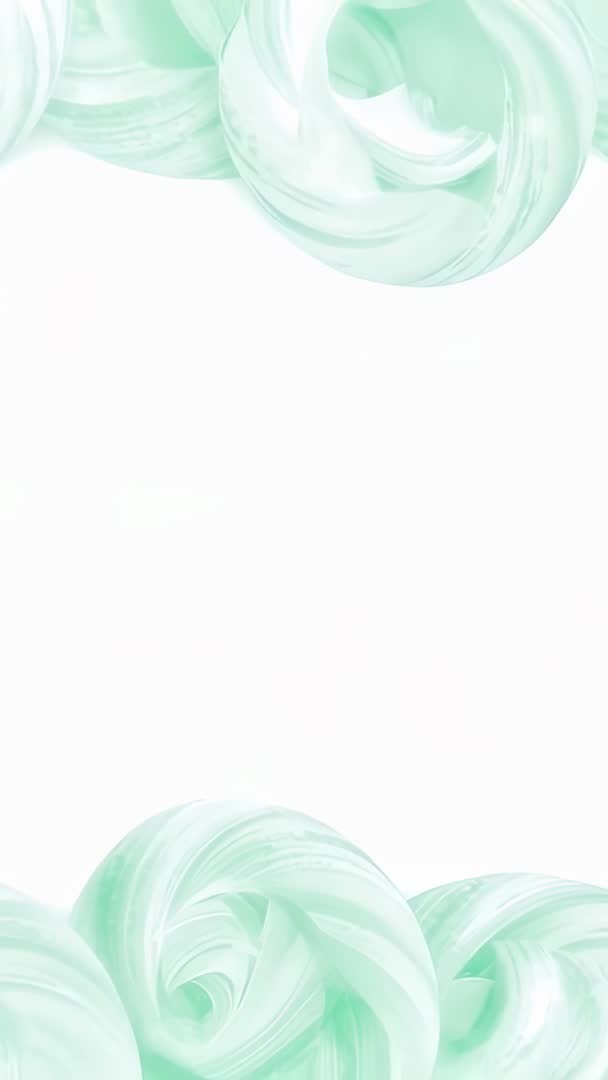 AI Generated Video. Moving mint-green swirls sweeping across top and bottom of vertical frame, leaving clean white center for text and product placement. Featuring glossy, semi-translucent pastel texture and smooth continuous motion, creating calming modern ornament without visual clutter. Optimized for phone screens and looping seamlessly, providing continuous decorative border for stories, reels, short ads, product reveals, beauty and wellness promotions, spa branding, event invitations, app intros, mobile wallpapers. Using central negative space for logos, headlines, animated captions, or product shots. Allowing easy recolor for brand matching or seasonal campaigns. Providing gentle motion and minimal composition for clear messaging and strong call-to-action placement.