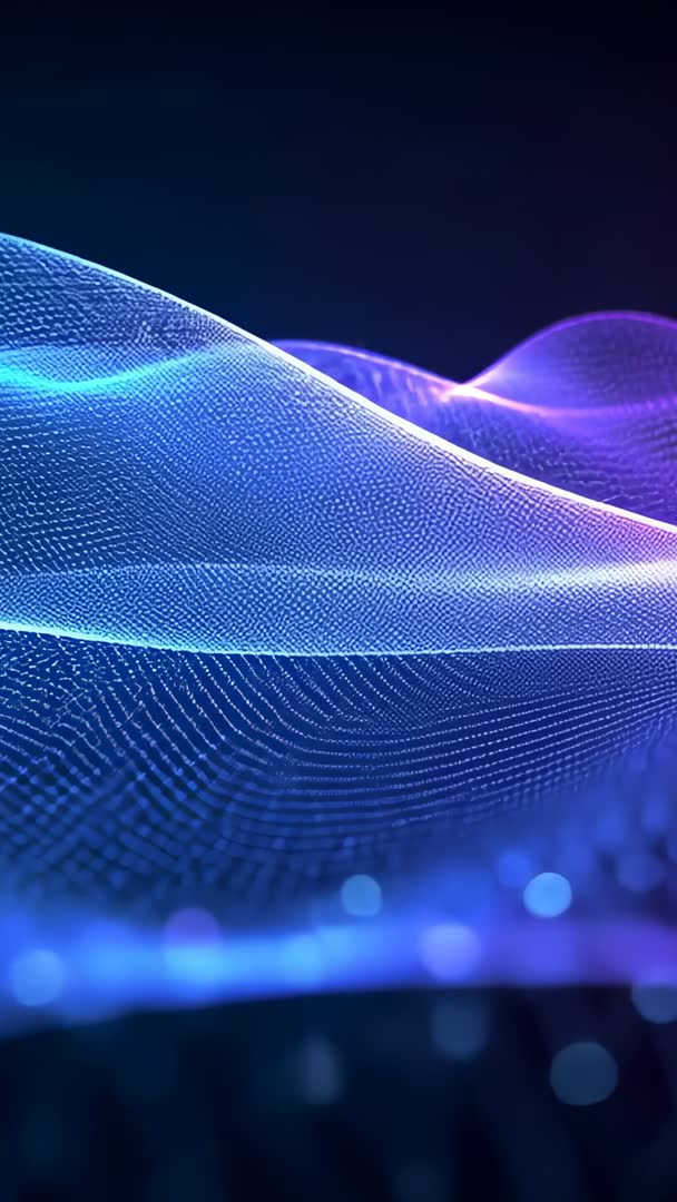 AI Generated Image. Featuring luminous 3D mesh wave undulating across space with floating bokeh highlights and soft gradient glow. Creating depth with parallax motion, particle grid detail, and smooth looping for continuous playback. Offering high-impact vertical composition optimized for mobile screens and social stories. Perfect for app intros, splash screens, livestream overlays, music visualizers, tech product promos, and title sequences. Allowing easy color grading, speed adjustments, and overlaying of text or logos for branding. Supplying atmospheric backdrop for presentations, event displays, and digital signage where seamless motion and futuristic aesthetic are required.