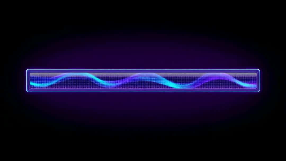 AI Generated Video. Presenting looping neon audio waveform bar morphing inside glass panel with purple halo and subtle mesh grid. Featuring smooth cyan-to-violet gradient, slow pulsing motion, and seamless loop for continuous playback. Providing strong negative space above and below for title, logo, or lower-third text overlays. Suitable for music promo videos, podcast intros, DJ visuals, livestream overlays, app or product demo backgrounds, event opener reels, and tech presentation slides. Compatible with video editing and motion graphics workflows for After Effects, Premiere, Final Cut. Suggest using as hero background, social media ad, or VJ element with color grading and additive blending to enhance neon glow.