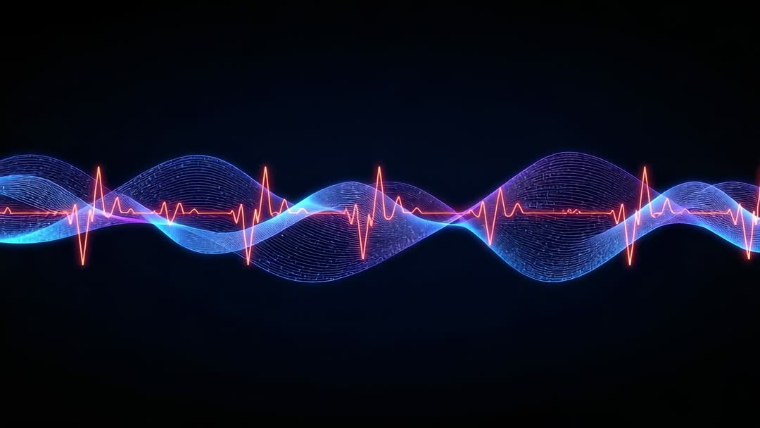 AI Generated Image. Showing looping neon waveform syncing red ECG spikes with flowing blue-purple mesh ribbon across dark digital background, creating striking pulse and signal visualization. Evoking high-tech medical monitoring, audio-reactive graphics, and data transmission themes for modern visual storytelling. Suited for medical presentations, cardiology awareness campaigns, health-tech product demos, streaming overlays, music visualizers, and website headers. Supplying seamless looping footage for background animation, broadcast lower thirds, app intros, and social media ads, with easy color grading and compositing options for brand integration.