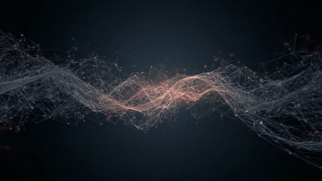AI Generated Image. Featuring looping neural mesh shifting across dark gradient, pulsing warm core and emitting glowing particle sparks. Presenting wireframe nodes and connecting lines forming flowing waveform, suggesting data transfer, signal propagation and network connectivity. Combining deep charcoal backdrop with warm amber highlights for dramatic contrast and cinematic mood. Working well for tech company intro, website hero background, software demo opener, data visualization sequence, scientific explainer, broadcast graphic, social media loop or music visualizer. Providing seamless loop for continuous playback and allowing flexible cropping for landscape or banner formats. Supporting overlays, motion graphics projects, HUD designs, corporate branding and advertising campaigns seeking high-tech futuristic aesthetic.
