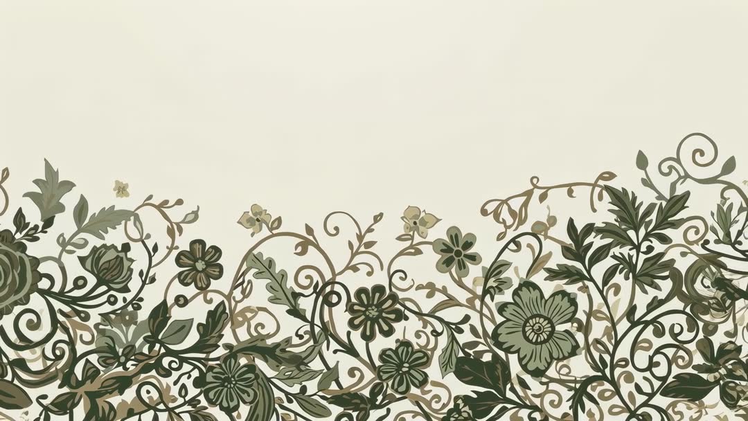 AI Generated Image. Looping ornate floral vines swaying across beige backdrop, delicate butterfly accent fluttering through curling tendrils. Offering smooth rhythmic motion, creating calming decorative border ideal for continuous display. Perfect for website headers, social media intros, video overlays, wedding title sequences, product packaging loops, promotional banners. Design features soft muted green and beige palette, hand-inked vinework look, layered depth for parallax effect, transparent center area for text or logo placement. Supplied as seamless loop clip suitable for background animation, lower thirds, brand idents, seasonal campaigns. Recommended uses include lifestyle, home decor, botanical, vintage, artisanal brand projects, wedding stationery animations.
