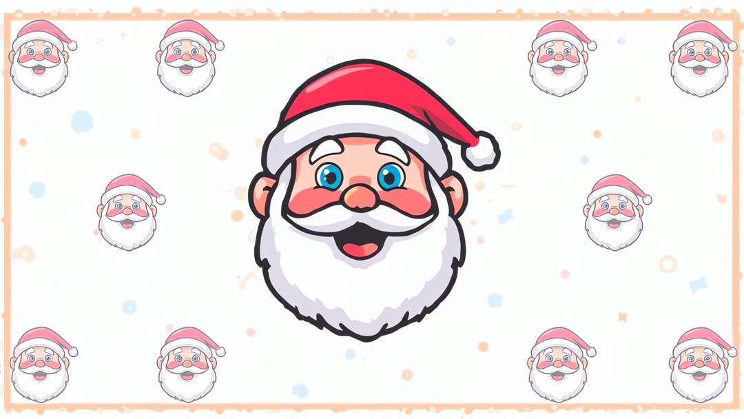 AI Generated Image. Looping animation showing cheerful Santa head bobbing, tilting hat and opening mouth to greet viewers. Centered large Santa face surrounded by tiled smaller Santa icons over soft confetti background. Bright color palette and bold outlines delivering clean cartoon look suitable for family-friendly holiday content. Perfect for holiday greeting cards, social media reels and stories, animated email headers, website banners, digital signage, animated GIF stickers, mobile messaging packs, kids party invitations, seasonal ads and e-card campaigns. Easy to loop for seamless playback, ideal for short-form video ads and animated banners. Background color and text overlay customization enabling brand alignment. Vector-friendly artwork allowing resizing without quality loss. Licensing guidance: commercial and editorial use depending on license purchased.