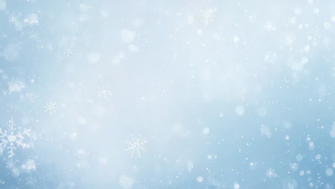 - Looping soft snowfall drifting across icy blue bokeh background for winter overlay