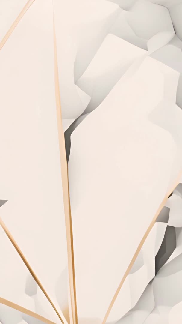 AI Generated Image. Looping vertical animation showcasing golden lines fanning over soft gray-white geometric planes. Minimalist geometric motion creating elegant, calming mood with subtle metallic accents. Vertical 9:16 aspect ratio optimized for mobile stories and reels. Looping seamless flow suitable for Instagram Stories, TikTok backgrounds, Snapchat, mobile wallpapers, vertical ad banners, livestream overlays. Serving as intro or transition for luxury product showcases, fashion reels, interior design promotions, tech branding. Pairing with simple text overlays, logo reveal, or subtle sound design to enhance brand messaging. Providing easy customization by adjusting color palette, speed, or line thickness for brand consistency. Exporting as MP4 or GIF for fast deployment or as Lottie for scalable web animations.