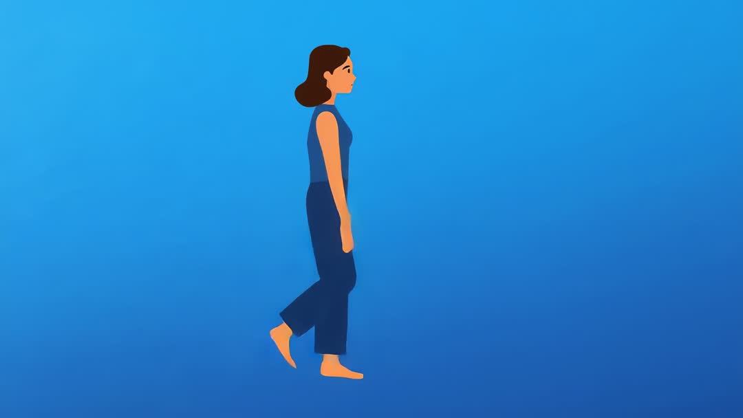 AI Generated Image. Looping side-profile vector animation showing female character walking barefoot across blue gradient background. Wearing tank top and pants, hair styled in short bob, arms swinging naturally. Seamless looping, serving UI mockups, app prototypes, explainer videos, onboarding flows, motion design demos. Working well for motion libraries, character animation tests, web animations, social media ads, educational content. Featuring minimal flat background, allowing easy color swaps and layering. Suitable for hero animations on landing pages, loading screens, tutorial steps, animated icons. Exporting as PNG sequence, GIF, MP4, SVG sprite sheet depending on workflow. Adjusting loop speed and frame timing to match branding tone.