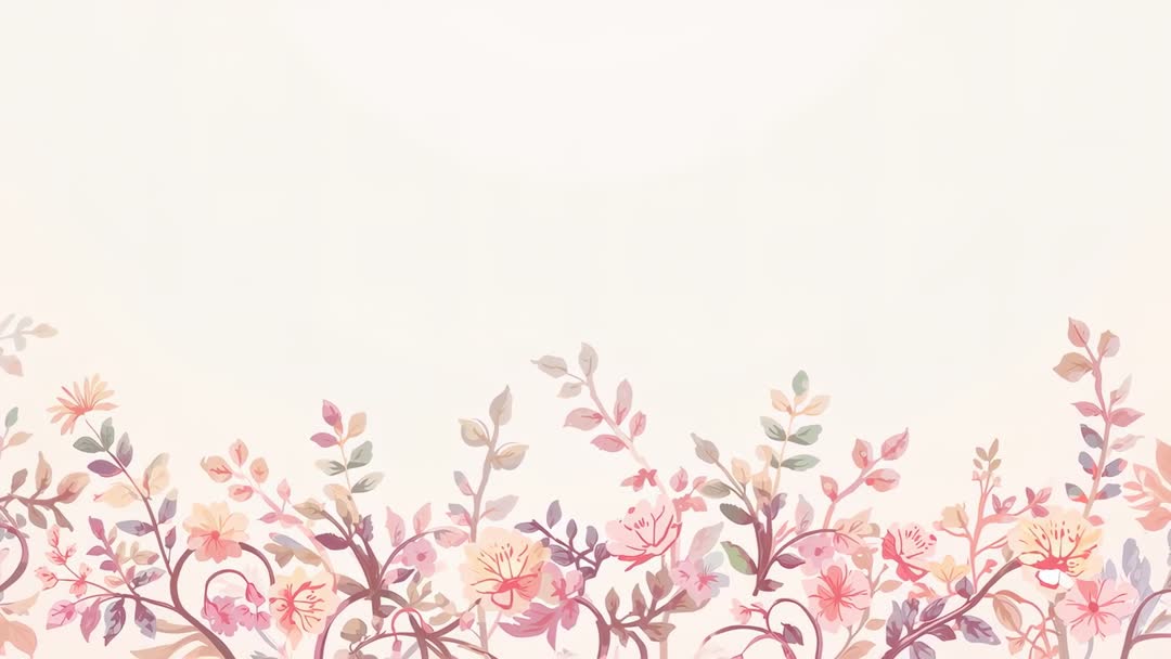 AI Generated Video. Video showing looping watercolor floral border moving along bottom of cream background, leaving large blank area above for text, logos, or graphics. Pastel palette featuring soft pinks, peach, muted greens, and warm cream tones, creating gentle, romantic mood. Usage ideas: - Using as intro loop for wedding invitation videos and digital save-the-dates - Using as decorative lower band for greeting card animations, social media stories, and video overlays - Using as header animation for wedding websites, online boutiques, floral shops, and seasonal marketing campaigns - Using as printable edge for stationery, invitations, thank-you cards, and event signage Production tips: - Exporting as MP4 for smooth playback or GIF/WebP for short lightweight loops - Setting loop duration between 4 and 8 seconds for subtle continuous motion - Slowing playback for elegant cinematic feel or speeding up for playful promotional spots - Adding soft semi-transparent overlay or drop shadow behind text for improved readability - Separating floral elements into layers for subtle parallax movement in video editor Color and style suggestions: - Pairing with serif or handwritten script fonts for romantic branding - Matching web buttons and accents to pastel pink or peach tones - Using for spring and Mothers Day campaigns, wedding promotions, lifestyle content, and boutique branding
