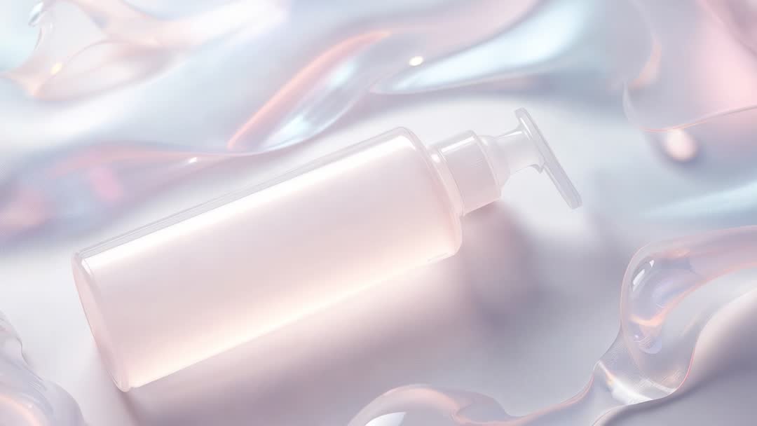 - Lotion Bottle Shifting Elegantly on Iridescent Fluid Surface