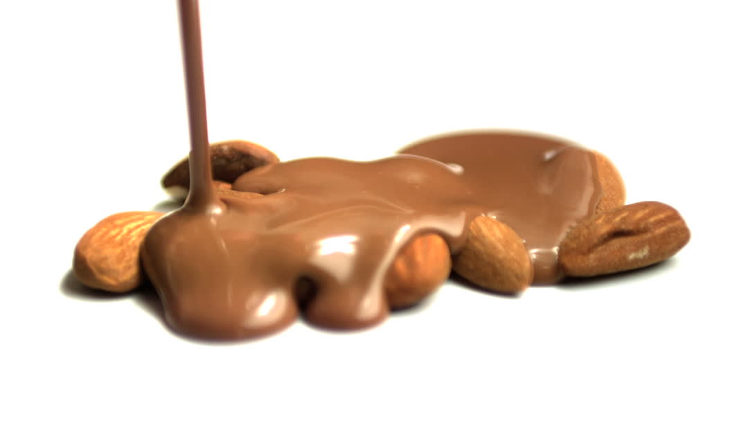 - Luxurious Melted Chocolate Drizzling Over Almonds