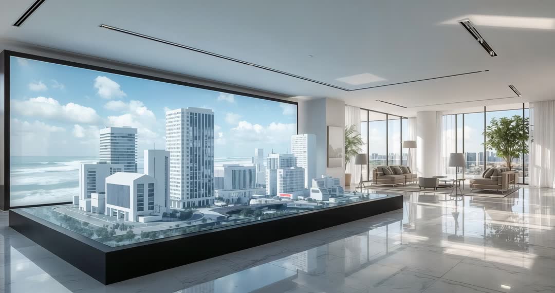 - Luxury Penthouse with City Model Display Tables Urban Architectural Design Showpiece