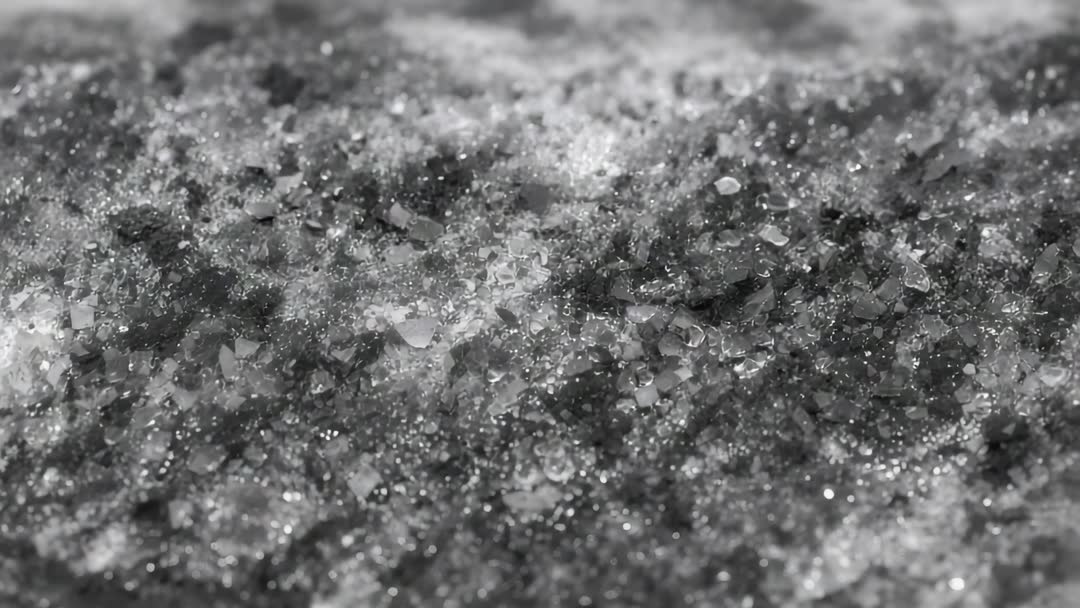 AI Generated Image. Macro panning video showing salt crystals under high magnification with faceted granular surface and shimmering specular highlights in monochrome. Closeup motion revealing depth, varied crystal geometry, and glittering reflections for scientific study or abstract visuals. Working well for educational content, laboratory demonstrations, research presentations, mineralogy tutorials, and editorial sequences. Serving as textured background or overlay for motion graphics, title cards, packaging design, and product advertising. Offering loop-friendly pan and high contrast detail for seamless compositing with lower thirds, text overlays, or visual effects. AI-generated grayscale footage allowing color grading or tinting to match project palette and creative direction.
