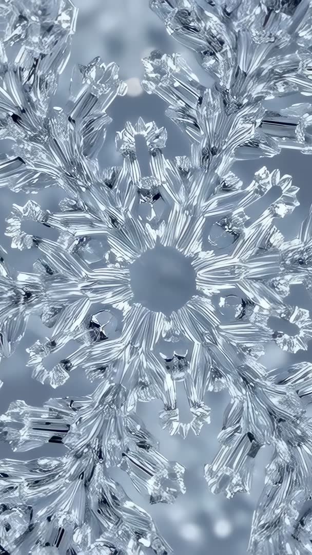 AI Generated Video. Vertical macro video showing snowflake rotating while lens shifting focus to reveal crystalline facets and sparkling glints. Close-up composition emphasizing symmetry, prism-like refractions, and delicate ice texture. Soft studio lighting creating subtle bokeh highlights and cool blue tones. Usage ideas: - Using for winter and holiday campaigns, seasonal social posts, mobile story ads and vertical reels. - Using as background for product promotions, perfume or jewelry commercials, luxury packaging and gift guides. - Using in science and education content explaining crystallography, snow formation or optical refraction. - Using as looping background for websites, title sequences, app splash screens or ambient displays. Editing tips: - Applying slow motion and seamless looping to extend visual interest. - Enhancing cool tones with color grading and boosting highlights for stronger glints. - Overlaying bold white or metallic text and subtle particle effects for seasonal messaging. Technical notes: - Vertical 9:16 framing optimized for smartphones and social platforms. - Macro shallow depth of field producing sharp crystalline detail with soft background bokeh.