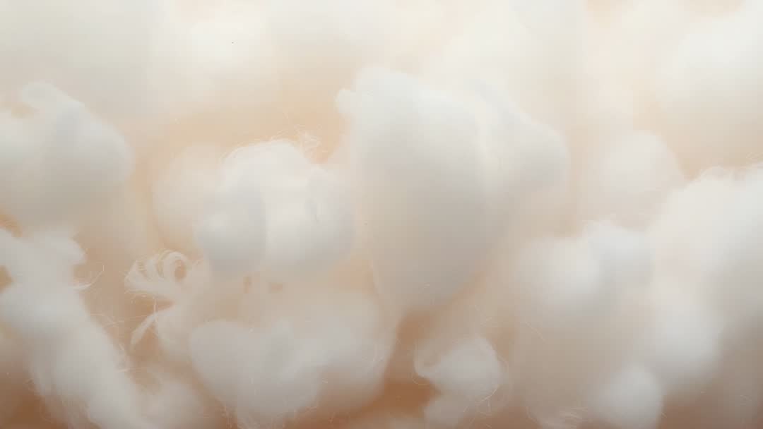 AI Generated Image. Macro video showing cream cotton-like fibers drifting in slow gentle motion and revealing fine filaments, soft tufts, and airy puffs. Close-up perspective capturing warm cream and beige tones, shallow depth of field, and soft studio lighting, creating calming abstract texture sequences. Footage working well for looping background in wellness apps, sleep and bedding commercials, textile product showcases, sustainable material storytelling, packaging animation, social media reels, website hero banners, and editorial features about fabric design. Ideal for motion graphics overlays, texture fills, cinematic transitions, and close-up detail montages; compatible with slow-motion and micro-detail sequences. Include keyword tags for cotton, softness, textile, and close-up to improve search discoverability. AI-generated content label included when required.
