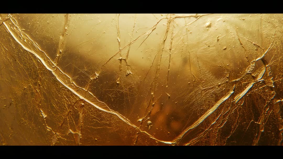 - Macro View of Crackled Gold Panel with Warm Backlighting