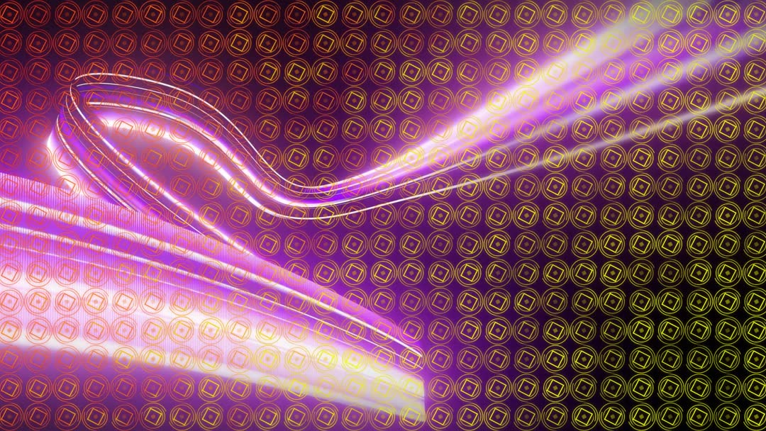 Showing magenta neon ribbons flowing from lower-left and sweeping right across glowing gold lattice, this loopable motion clip creating sense of speed and energy. Bright gradient beams blending magenta, purple, and yellow forming layered light trails and soft flares. Suited for music visualizers, title intros, event openers, concert projections, club promotions, tech product launches, social media backgrounds, website hero panels, broadcast bumpers. Offering easy loop, high contrast palette, and abstract futuristic mood for branding, advertising, VJ sets, and motion design projects. Recommending overlaying logo, adding text lower-third, syncing light pulses to audio for rhythmic edits, or using as backdrop for product reveals. Delivering bold cinematic atmosphere for intros, transitions, and background ambience.