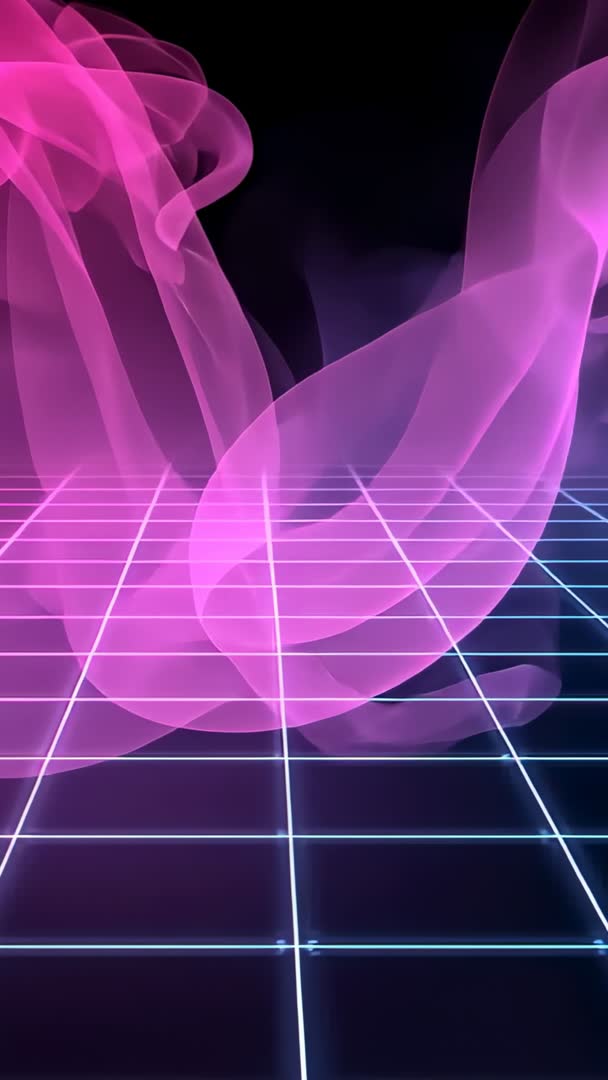 - Magenta Ribbon Smoke Flowing Over Neon Grid Retro Futuristic Vertical Video Background