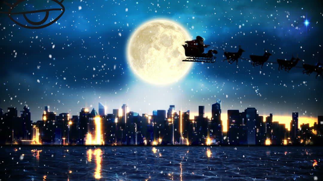 Magic Christmas Eve Cityscape with Santa's Flying Sleigh Video