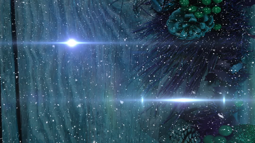Festive background featuring Christmas decorations with falling snow and a magical light effect. Ideal for holiday-themed designs, greeting cards, and digital animation projects that celebrate the winter season.