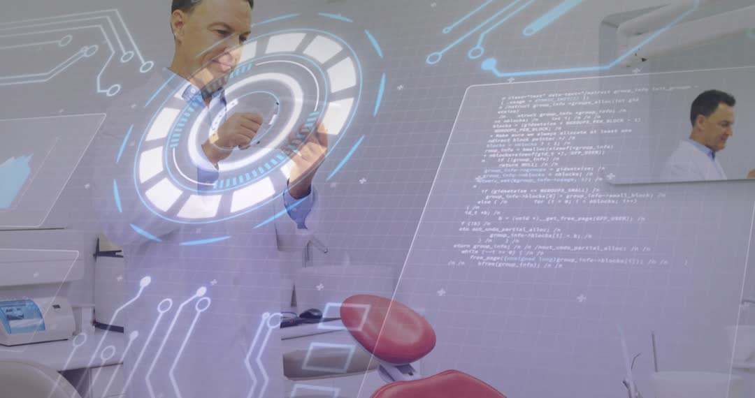 - Male Dentist Using Futuristic Holographic Interface in Clinic