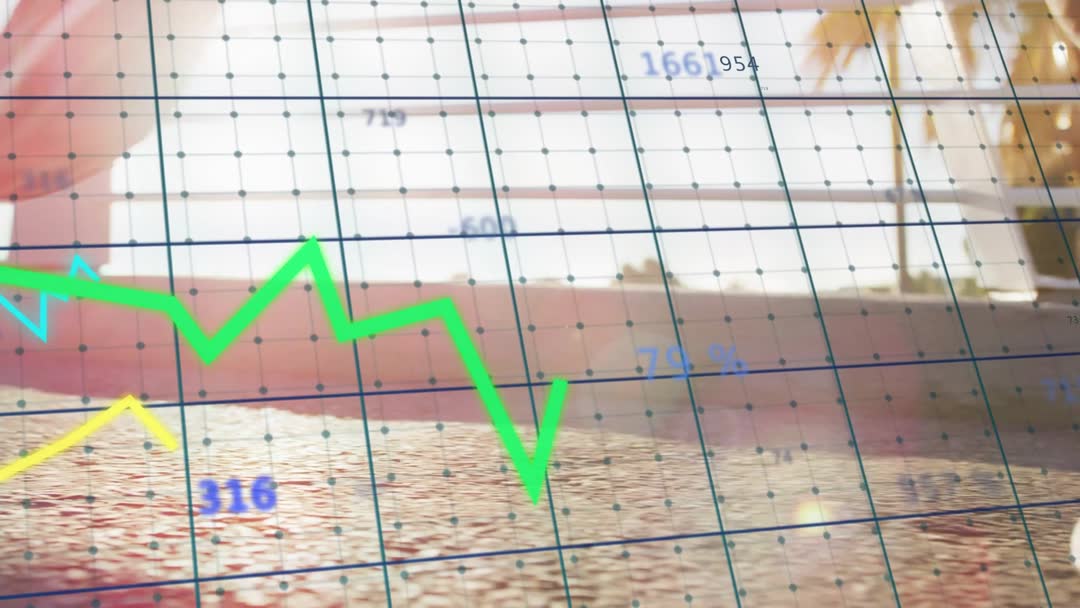 Male runner stepping onto bridge with fitness graphs showing pace while mate joining Video