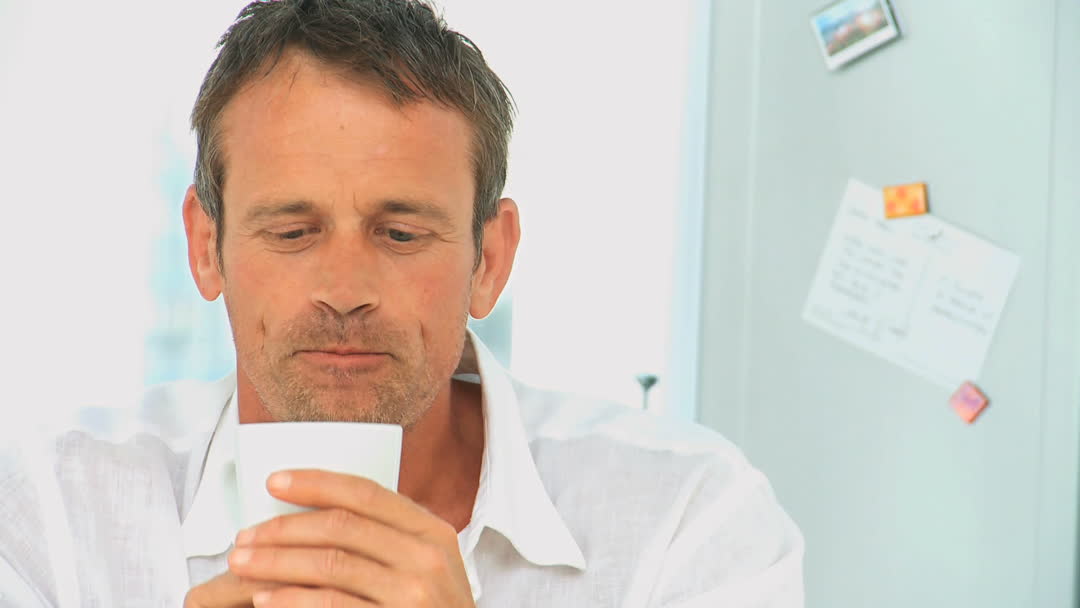 Man Enjoying a Mellow Morning Coffee Moment Video