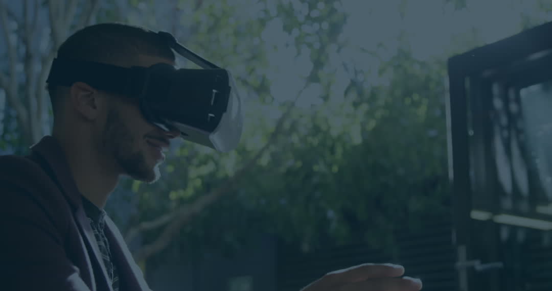 - Man Experiencing Virtual Reality Outdoors With Modern VR Headset