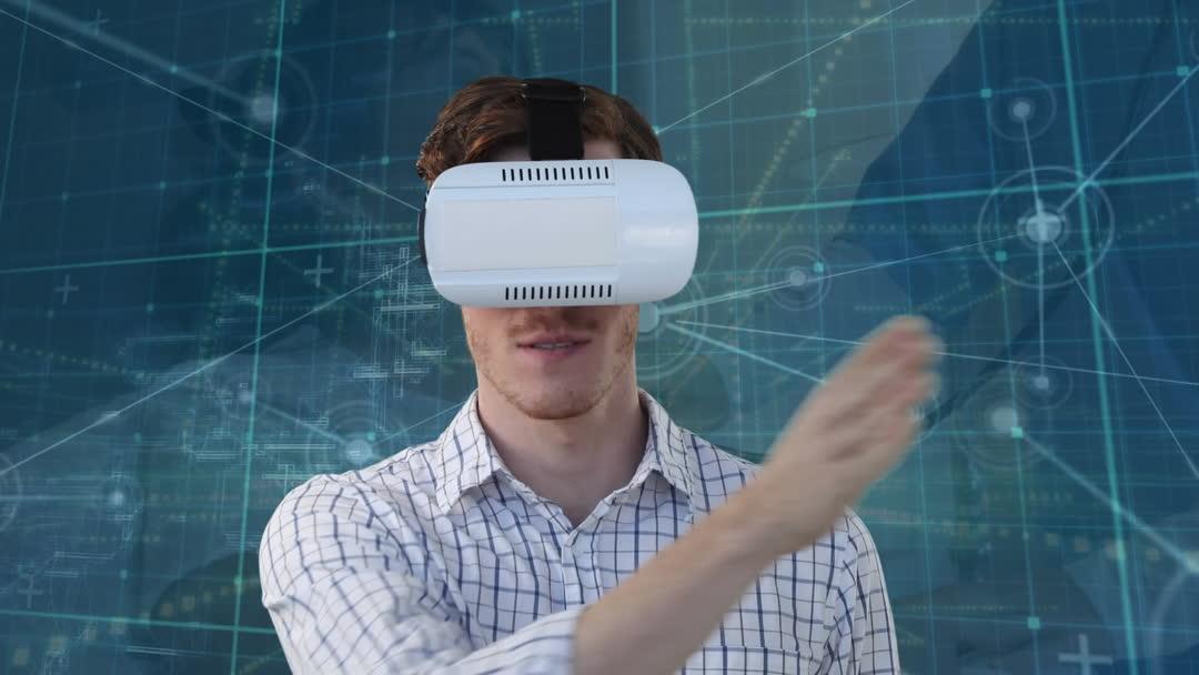 Man Experiencing Virtual Reality with Advanced VR Headset Video