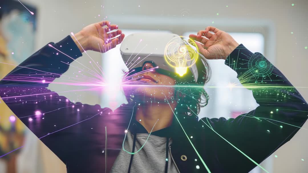 - Man Exploring Virtual Reality with Colorful Neon Graphics