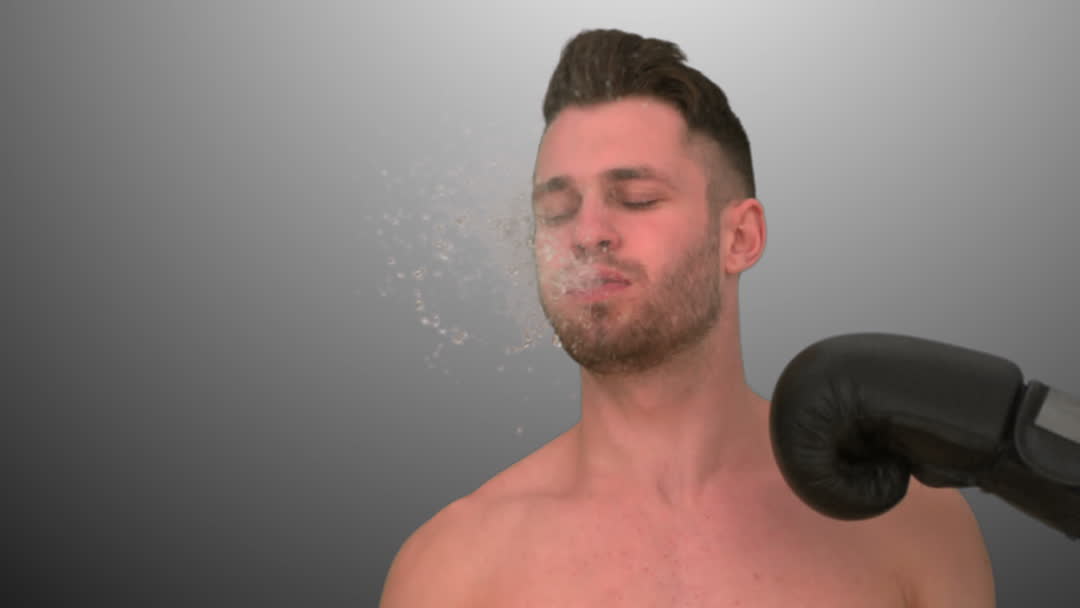 - Man Receiving Punch with Boxing Glove in Action