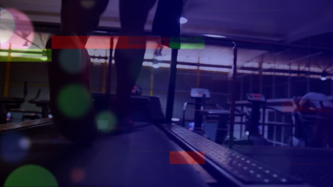 - Man Running on Treadmill with Colorful Lens Flares and Lights
