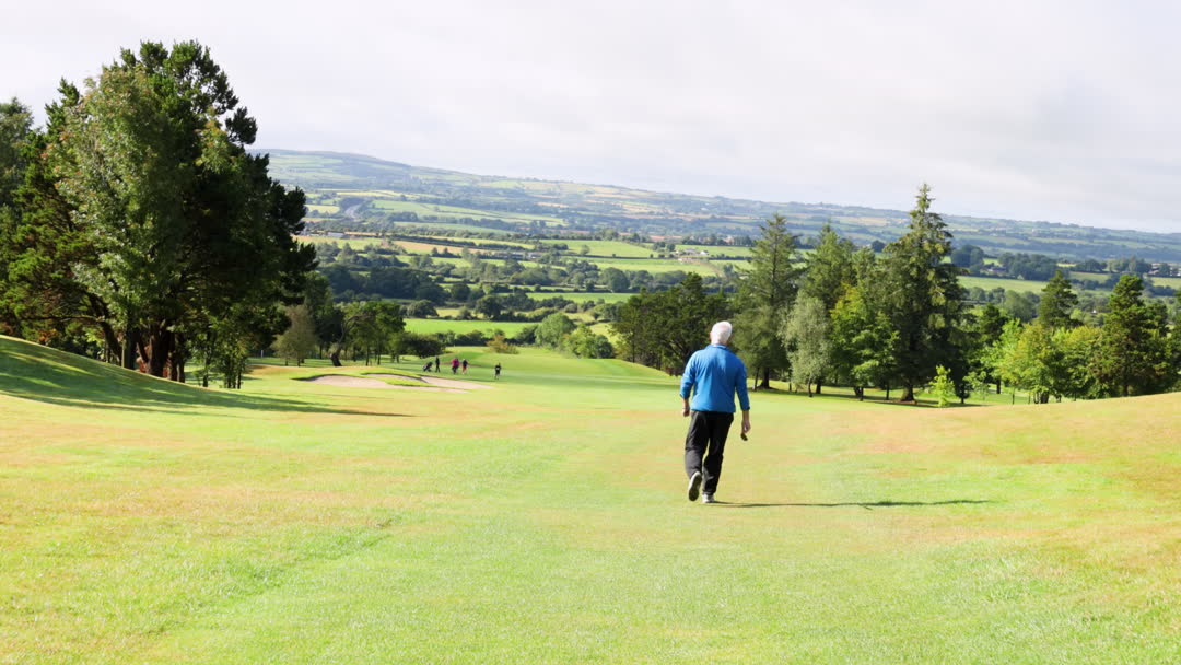 - Man Strolling Golf Course Amidst Scenic Irish Countryside