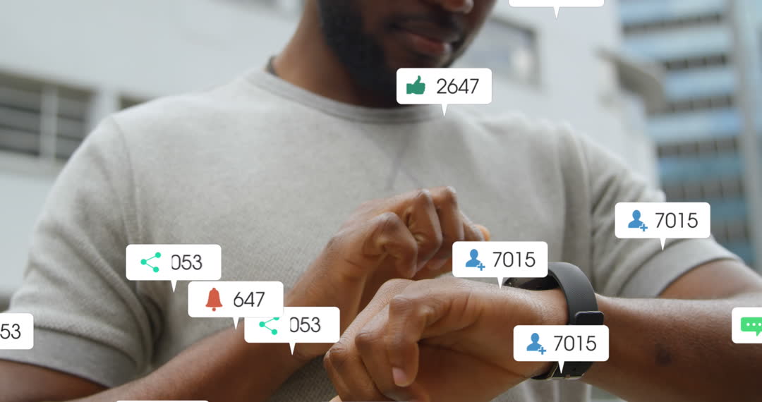 - Man Tracking Social Media Metrics via Smartwatch outside
