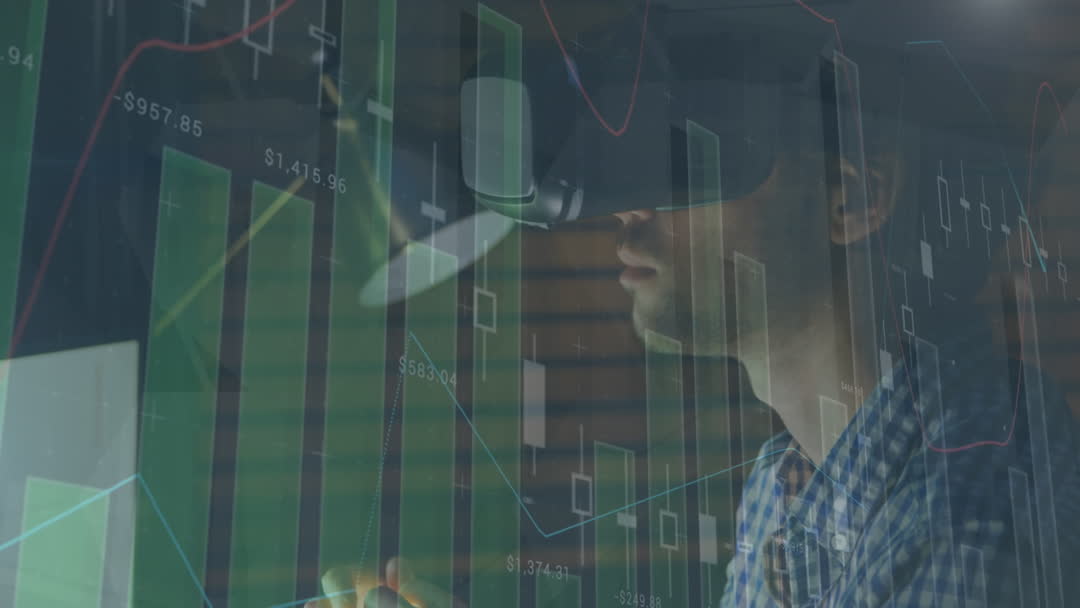 - Man Using VR Headset with Virtual Financial Data Overlay
