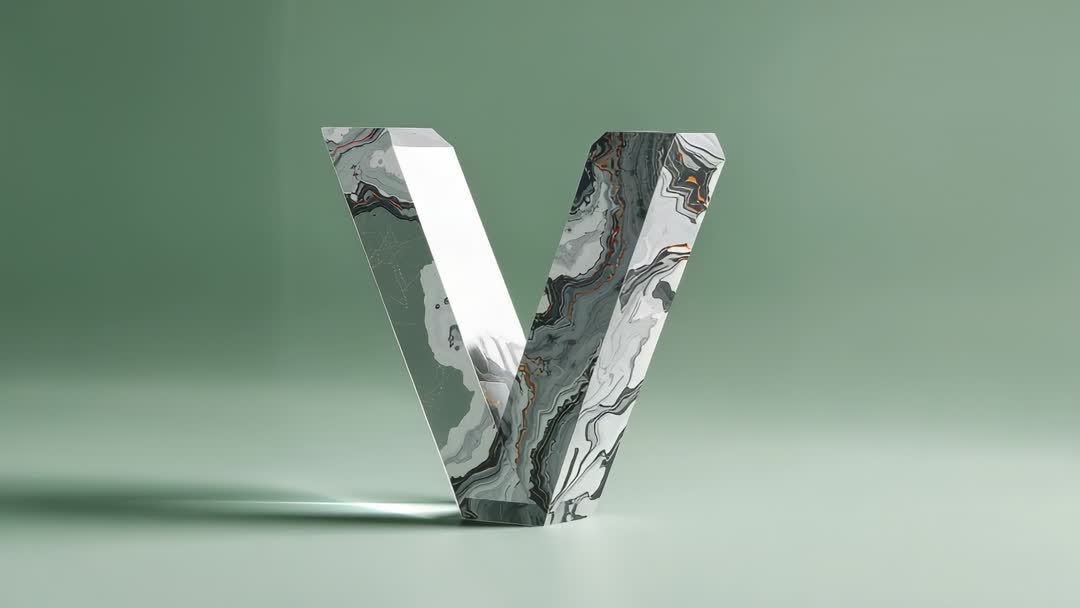 Marble Faceted V Sculpture in Minimalist Animation Video