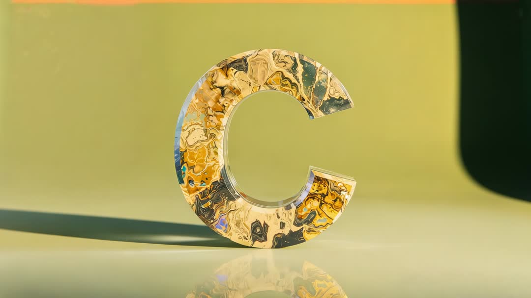- Marble-Metal Hybrid Letter C Transforming in Light