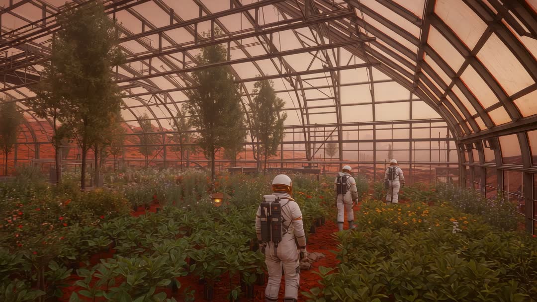 - Mars Greenhouse Crew Surveying Biome in Spacesuits for Terraforming Research