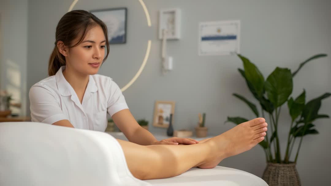 - Masseuse Massaging Calves in Relaxing Spa Environment
