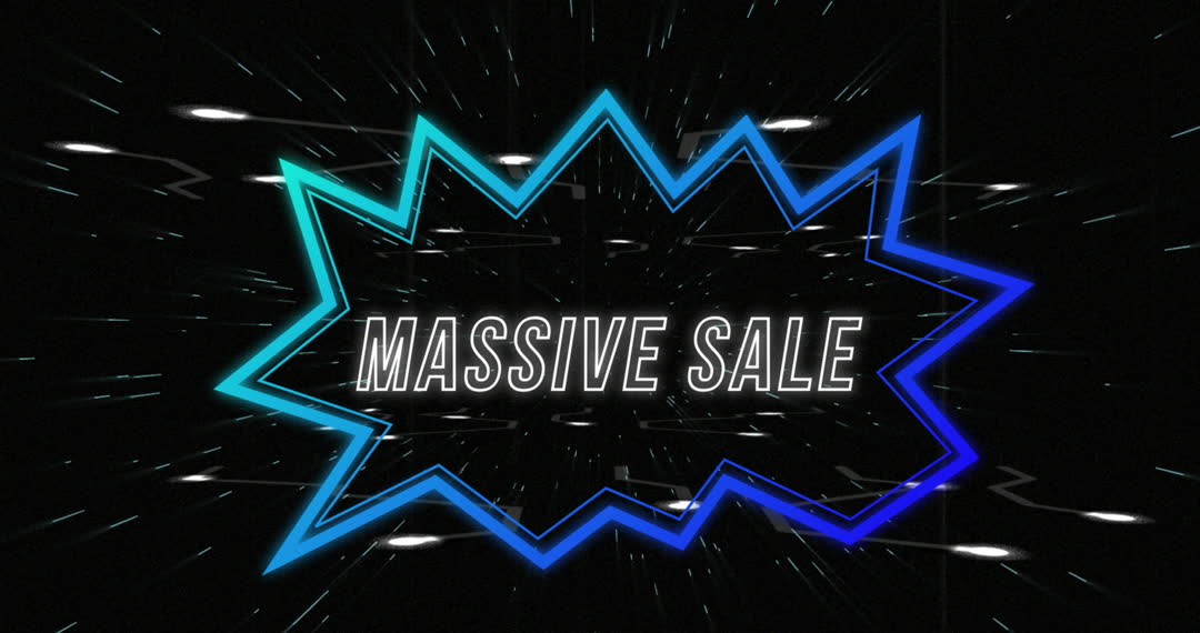 This animated sign features the words 'Massive Sale' on a black background with dynamic blue shapes and glowing lights, creating a sense of excitement and urgency. Ideal for advertising promotions, digital marketing campaigns, and online store banners, this attention-grabbing design effectively highlights sales events and special offers to potential customers. Use for boosting retail sales and drawing attention to discounts available on a variety of items.