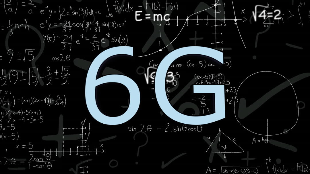 Backdrop filled with mathematical and physics equations, prominently featuring '6G'. Represents technological complexity and innovation. Ideal for educational, scientific, or technology journal articles, presentations, or digital innovations marketing materials.