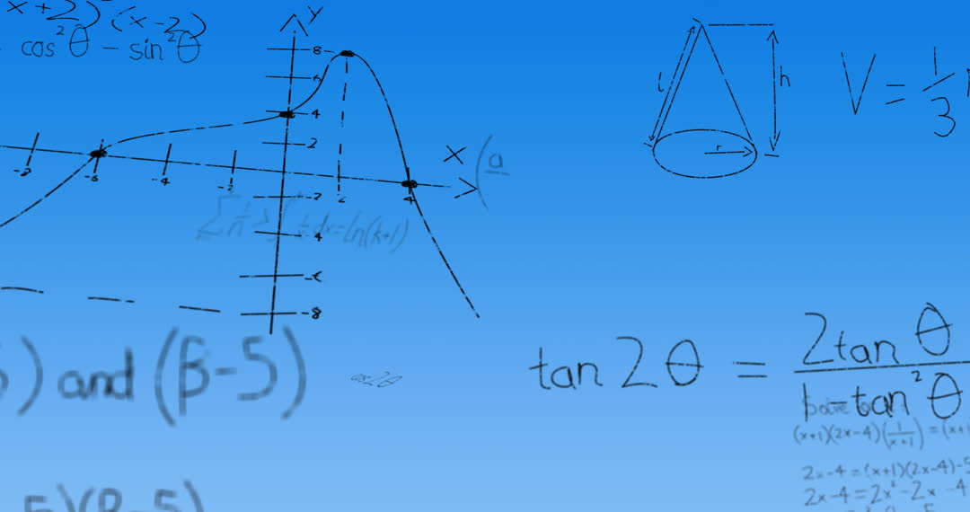 Animation features complex mathematical formulas and geometric diagrams over blue background. Effective for educational videos focused on mathematics concepts, presentations showcasing data processing methods, or visual content for science and technology conferences.