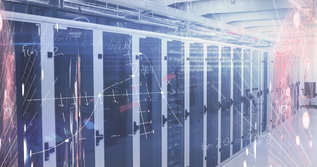 Combines mathematics with technology, showcasing a server room overlaid with mathematical formulas and graphs. Ideal for illustrating complex data processing, computer science research, and innovations in networking technology. Useful in presentations, educational materials, and articles discussing data analytics and IT infrastructure.